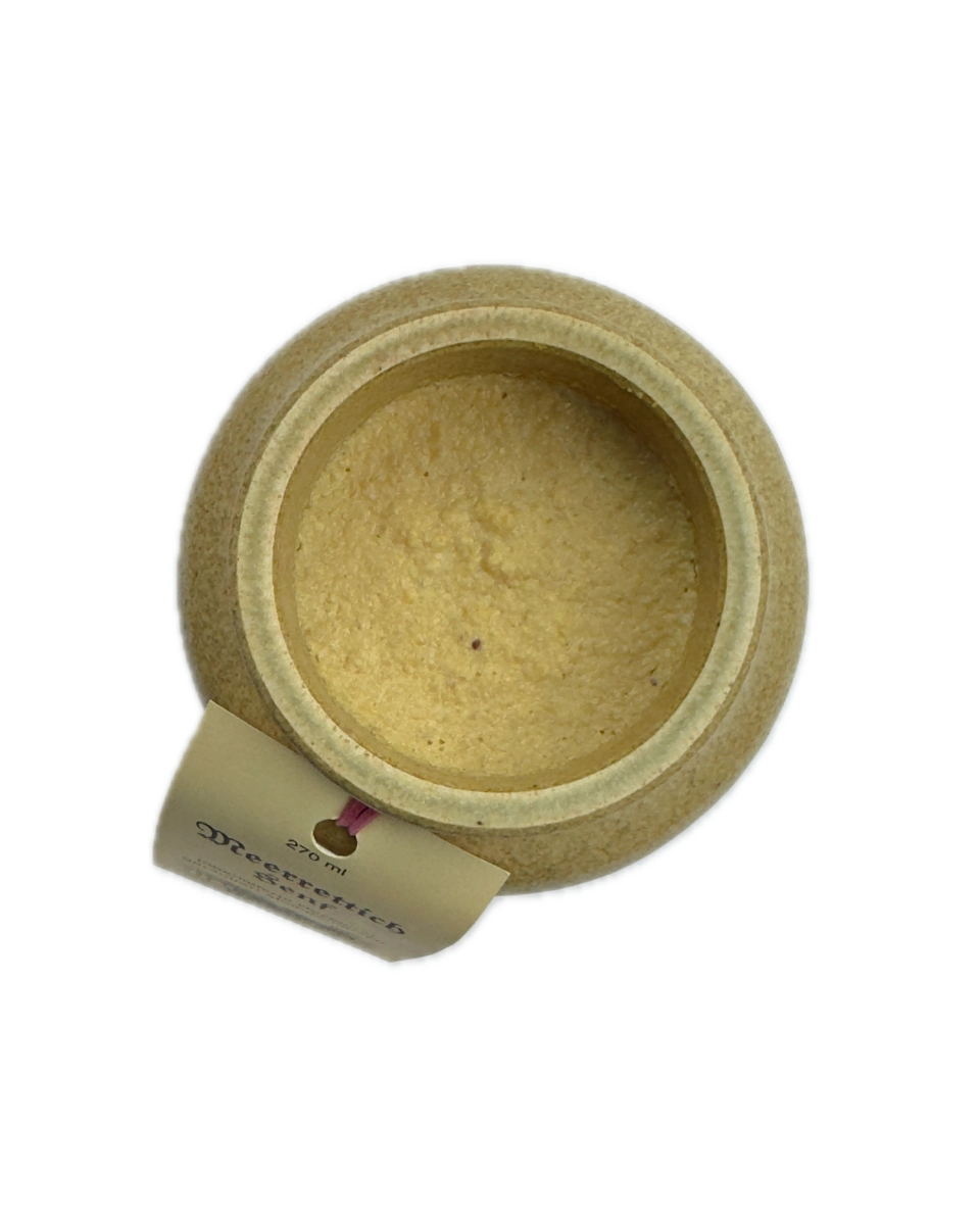 💡 Dieser Meerrettichsenf wird traditionell steingemahlen und im Steinguttopf abgefüllt. Seine besondere Mischung aus Senf und Meerrettich sorgt für eine würzige, aromatische Schärfe – vielseitig einsetzbar in der Küche.