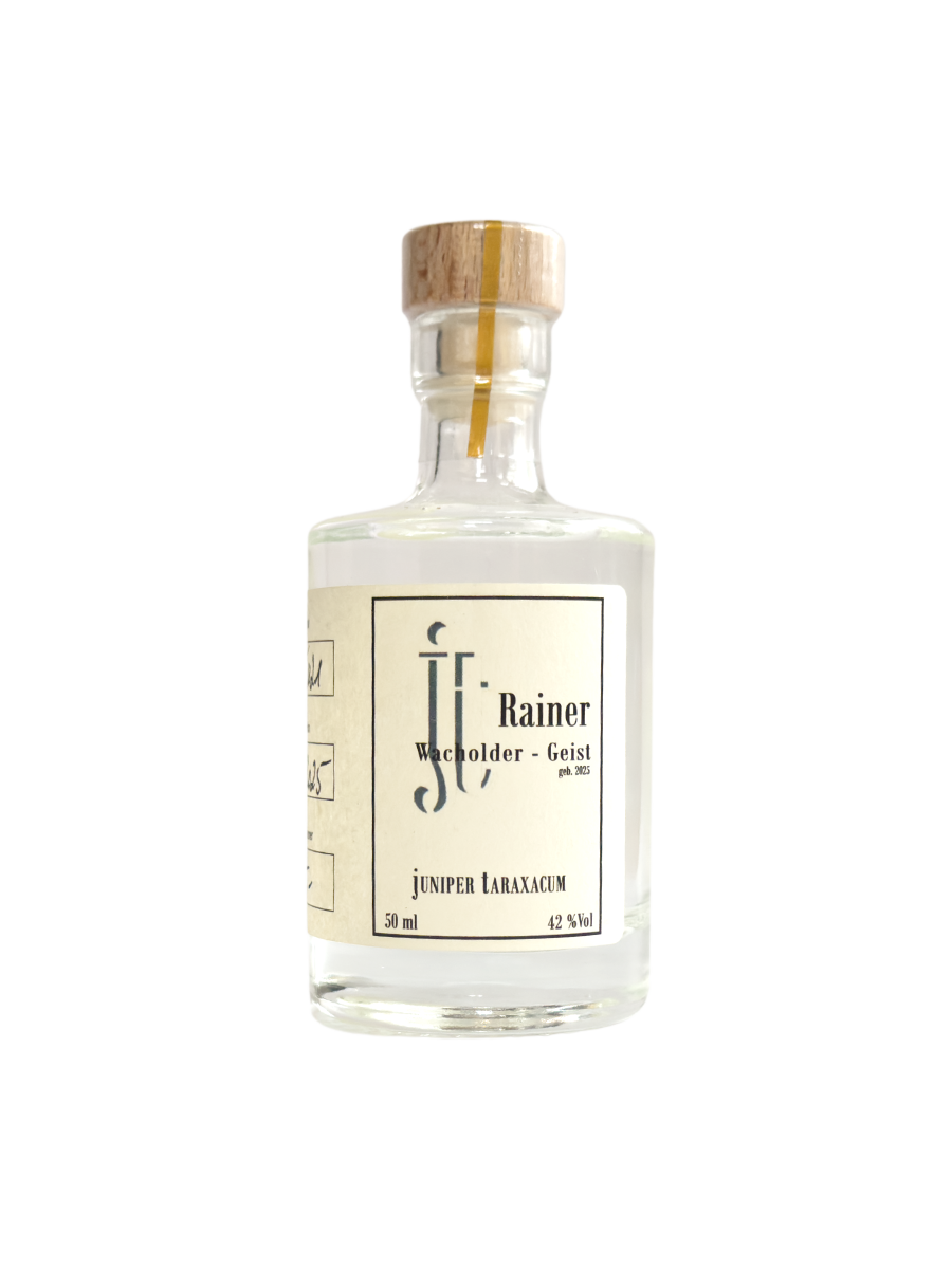 Der Rainer Wacholder-Geist präsentiert sich als hochwertiges Destillat, das den charakteristischen Duft und Geschmack des Wacholders in den Mittelpunkt stellt – klar, rein und aromatisch.